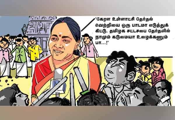 இதை கேட்ட பா.ஜ., தொண்டர் ஒருவர், 'கேரள உள்ளாட்சி தேர்தல் வெற்றியை ஒரு பாடமா எடுத்துக்கிட்டு, தமிழக சட்டசபை தேர்தலில் நாமும் கடுமையா உழைக்கணும் பா...' என கூற, சக தொண்டர்கள் ஆமோதித்தனர்.