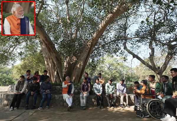 மரத்தடியில் அமர்ந்து மாணவர்களுடன் உரையாடிய மோடி; டில்லி அரசு மீது கடும் குற்றச்சாட்டு