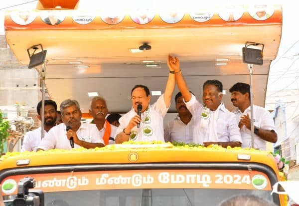 அவருடன் பன்னீர்செல்வம், எம்.பி.,க்கள் தர்மர், ரவீந்திரநாத், பா.ஜ., மாவட்டத்தலைவர் தரணிமுருகேசன், மாவட்ட பார்வையளார் முரளிதரன் உள்ளிட்டோர் பிரசார வாகனத்தில் வந்தனர். ரோட்டின் இருபுறம் திரண்டிருந்த மக்கள் மலர் துாவி வரவேற்றனர். மக்கள் மீது நட்டா மலர்களை துாவி உற்சாகப்படுத்தினார்.