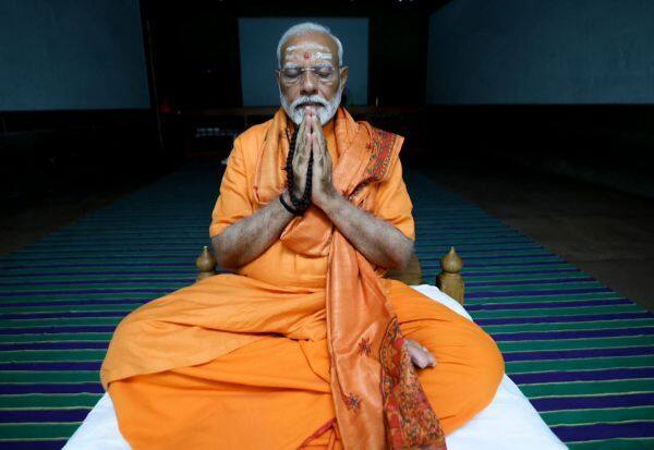 நேற்று அதிகாலை 4:00 மணிக்கு எழுந்த பிரதமர் மோடி குளித்து, காவி உடை அணிந்து நெற்றியில் விபூதி, குங்குமம் வைத்து ருத்ராட்ச மாலையை விரலால் உருட்டியபடி விவேகானந்தர் மண்டபத்தை சுற்றி வந்தார். காலை 6:00 மணிக்கு சூரிய நமஸ்காரம் செய்தார். சிறிய சொம்பில் இருந்த கங்கை தீர்த்தத்தை கடலில் ஊற்றினார்.