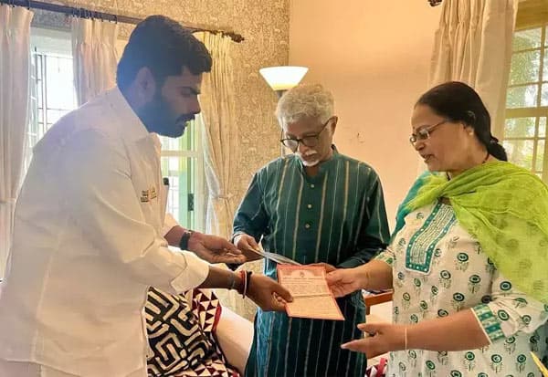 தமிழக பா.ஜ., தலைவர் அண்ணாமலை, சென்னை பாலவாகத்தில் தான் வசிக்கும் வீட்டிற்கு அருகில் வசிப்பவர்களின் வீடுகளுக்கு நேற்று நேரில் சென்று, ராமர் கோவில் திறப்பு விழாவில் பங்கேற்பதற்கான அழைப்பிதழை வழங்கினார்.