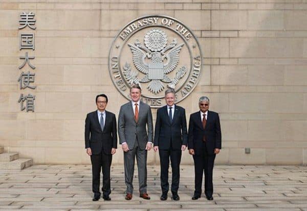 இந்நிலையில், சீனாவுக்கான இந்நாடுகளின் துாதர்கள், சீன தலைநகர் பீஜிங்கில் உள்ள அமெரிக்க துாதரகத்தில் நேற்று சந்தித்தனர். வழக்கமாக இது போன்ற சந்திப்புகள் குறித்து வெளிப்படையான அறிக்கை எதுவும் வெளியிடப்படாது. ஆனால், சீனாவுக்கான அமெரிக்க துாதர் டேவிட் பெர்டியூ, சமூக வலைதள பக்கத்தில், இந்த சந்திப்பு தொடர்பான புகைப்படம் ஒன்றை வெளியிட்டுள்ளார்.