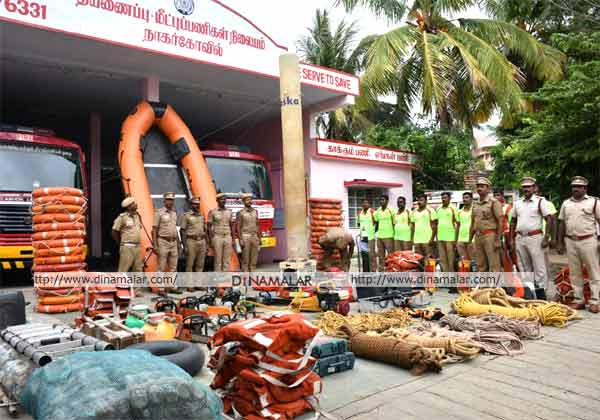 கன்னியாகுமரி மாவட்டத்தில் கனமழை செய்வதை முன்னிட்டு முன்னெச்சரிக்கை நடவடிக்கையாக, பாதுகாப்பு, மீட்பு உபகரணங்களுடன் தீயணைப்பு வீரர்கள் 24 மணி நேரமும் தயார் நிலையில் இருக்க அறிவுறுத்தப்பட்டுள்ளனர்.