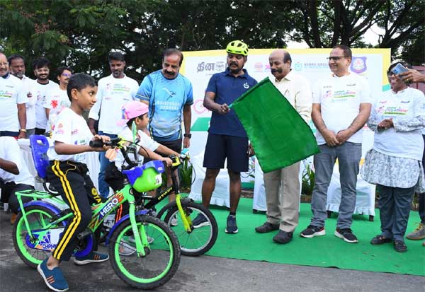 உலக சுற்றுச்சூழல் தினத்தையொட்டி தினமலர் நாளிதழ் சார்பில், சைக்கிள் பேரணி கோவை சுங்கம் பைபாஸ் ரோட்டில் நடந்தது. மாநகர போலீஸ் கமிஷனர் பாலகிருஷ்ணன் கொடியசைத்து துவக்கி வைத்தார்.
