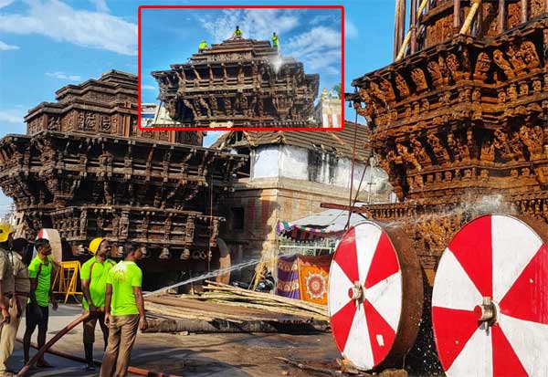 திருநெல்வேலி நெல்லையப்பர் கோயில் ஆனித் தேரோட்டம் ஜூன் 21ல் நடக்கிறது. கோயில் தேர்களை தீயணைப்பு படையினர் சுத்தப்படுத்தும் பணியை மேற்கொண்டனர்.