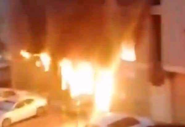 துபாயில் மன்கப் நகரில் 6 மாடி குடியிருப்பில் தீ பிடித்ததில் இந்தியாவை சேர்ந்த 49 பேர் பலியாகினர். தீ பற்றி எரியும் காட்சி.