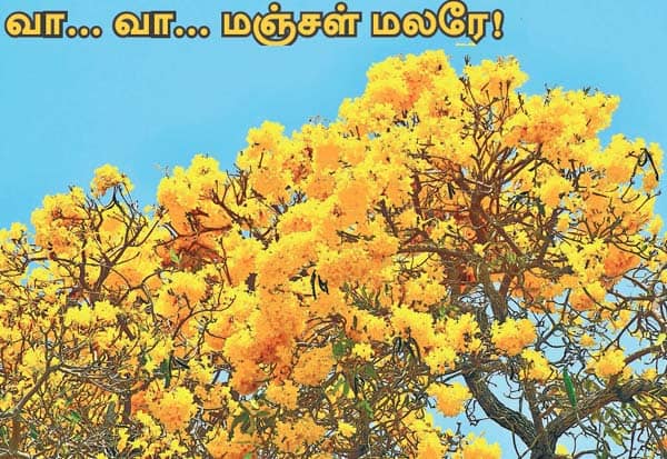 கோடை காலத்தை வரவேற்று பூத்துக் குலுங்கும் தங்க அரளி பூக்கள். இடம்: அணைப்புதூர், திருப்பூர்.