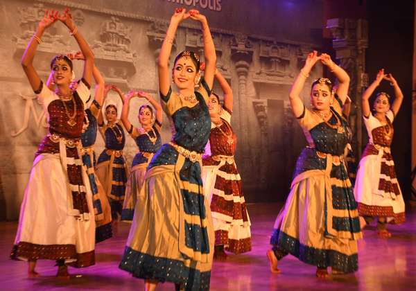 கோவை கிக்கானிக் மேல்நிலைப்பள்ளியில் நாட்டியாஞ்சலி நிகழ்ச்சியில் நடனமாடிய கலைஞர்கள்.