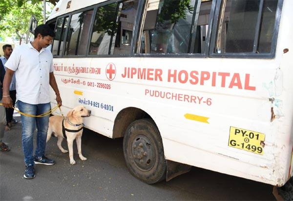 புதுச்சேரியில் உள்ள ஜிப்மர் மருத்துவமனைக்கு வெடிகுண்டு மிரட்டல் விடுக்கப்பட்ட நிலையில் அங்கு வெடிகுண்டு நிபுணர்கள் மோப்ப நாய் உதவியுடன் சோதனையில் ஈடுபட்டனர்.