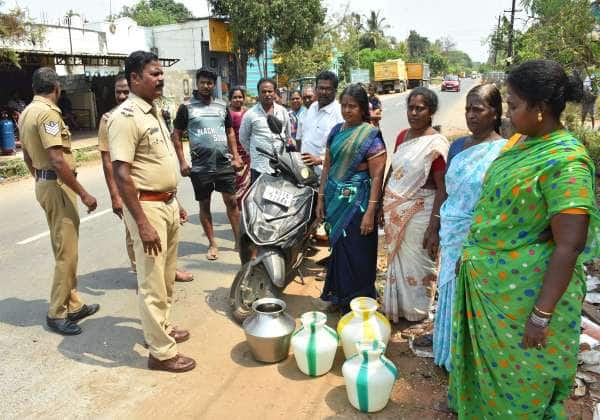 விருத்தாசலம் அடுத்த அண்ணா நகர் பகுதியில் குடிநீர் பிரச்னை கண்டித்து சாலை மறியல் செய்தவர்களிடம் போலீசார் பேச்சுவார்த்தை நடத்தினர்.