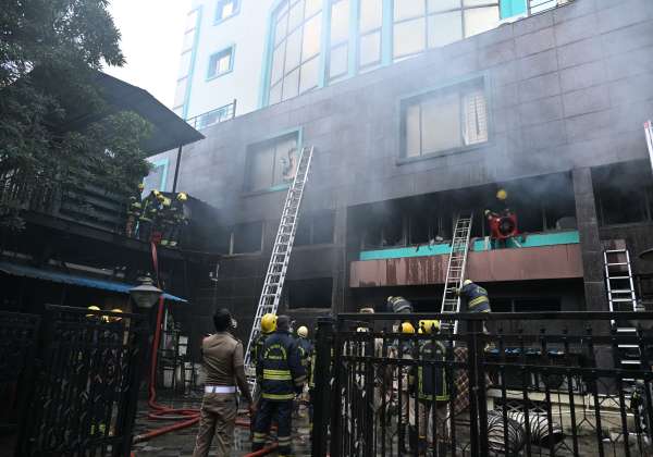 சென்னை திருமங்கலத்தில் உள்ள ஜி.எஸ்.டி கமிஷனர் அலுவலகத்தில் திடீரெ தீப் பற்றியது. தீயை அணைக்கும் பணியில் ஈடுபட்டுள்ள தீயணைப்பு வீரர்கள்.